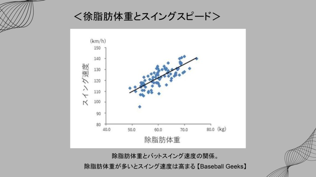 - LBMが増えるほど、スイングスピードや球速も向上する